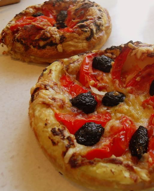 I had some pesto and puff pastry that needed using up at the weekend, and so I put together these lovely little tarts for our supper yesterday. They were really quick to make and quite delicious when they were done.