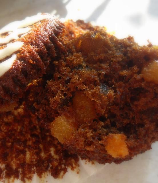 Moist and delicious and stogged full of tasty bits of preserved stem ginger and chopped dried apricot. The lemon drizzle is the perfect topping. Yummo!!