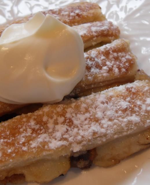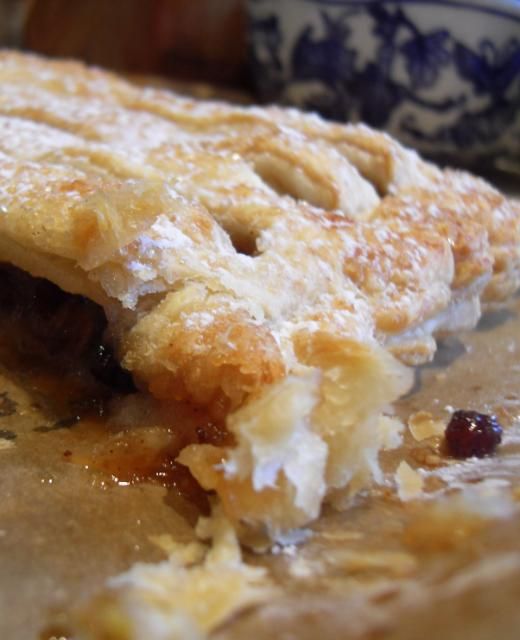 Light and crisp puff pastry filled with delicious bottled mincemeat and sliced apple. Served warm with a tasty dollop of creme fraiche. Yum!