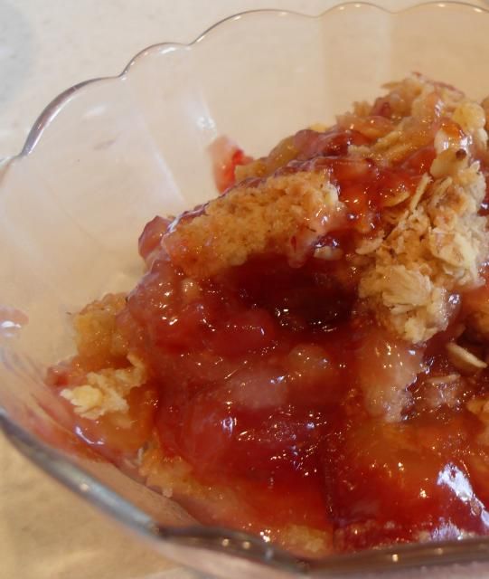 Place into the heated oven and bake, uncovered, for 15 to 20 minutes, until the topping is nicely browned. The fruit should be completely soft as well. Remove from the oven and let sit for about 10 minutes, before spooning out into individual serving dishes.