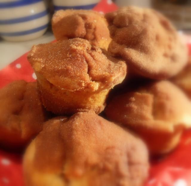 Whisk the caster sugar and cinnamon together in a bowl. Place the melted butter in another bowl. Once the muffins are cool enough to handle comfortabely, roll them in the melted butter and then into the cinnamon sugar to coat. Serve warm or at room temperature. Delicious!