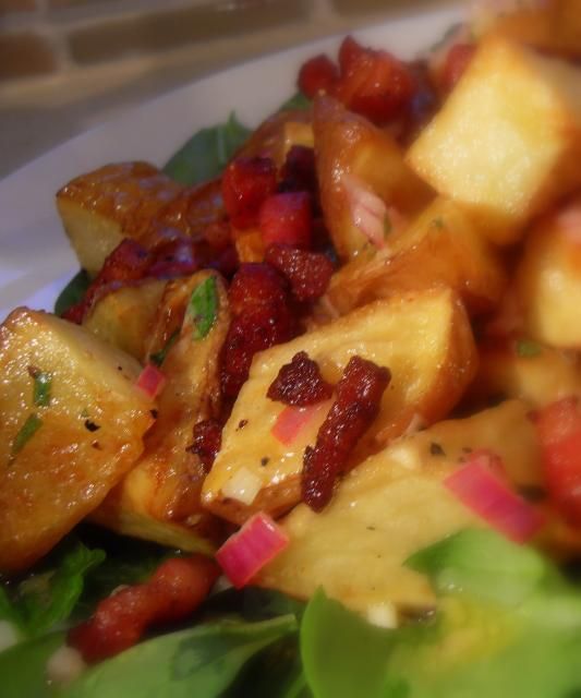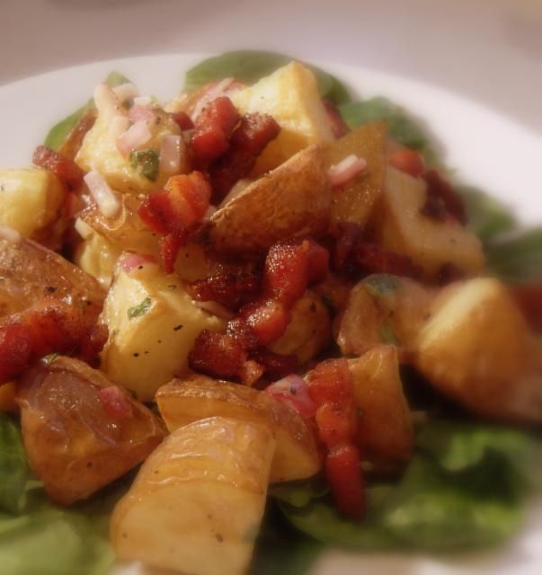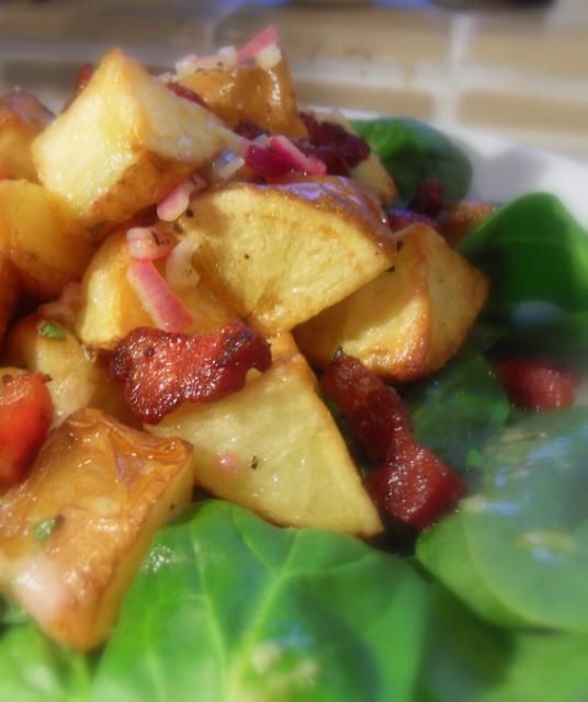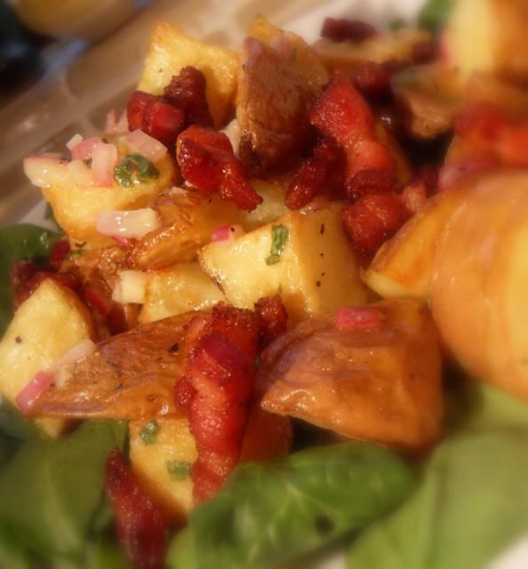 But . . . why stop there. Let's throw in some crispy smoked bacon, and call it a warm salad!!!!