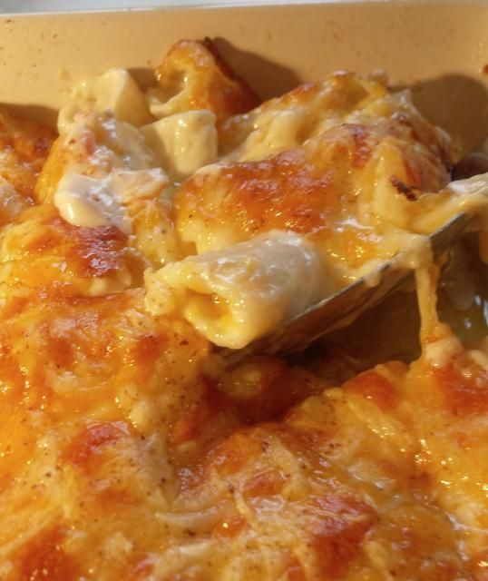 Rich, golden and loaded with cheese flavour. You can make this up to 3 days ahead and keep it covered in the refrigerator. It can be reheated in a microwave or a preheated 180*C/350*F oven just until heated through. Take care not to overbake though, in order to keep the cheese smooth. Delicious!!!