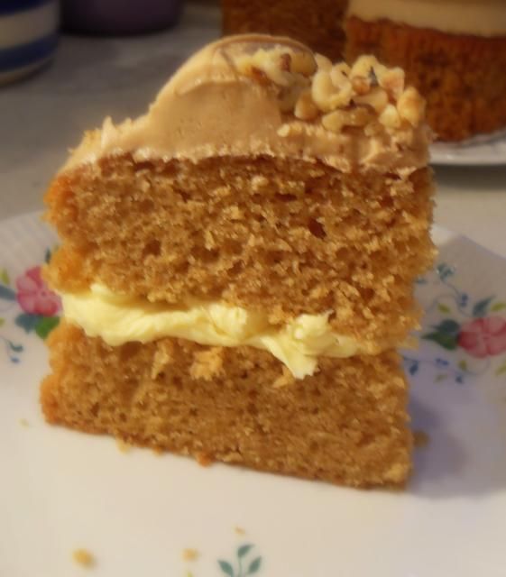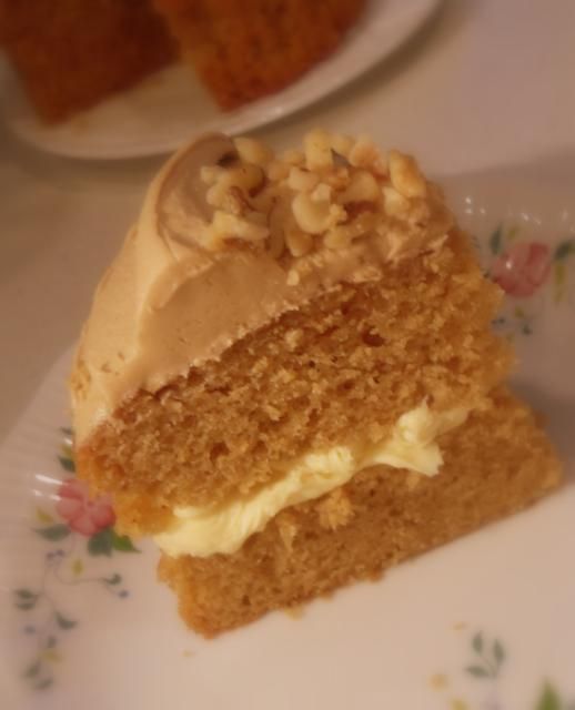 This is quite a common and a popular teatime treat over here in the UK. A deliciously moist cake covered in a tasty buttercream icing and flavoured with coffee essence and walnuts.