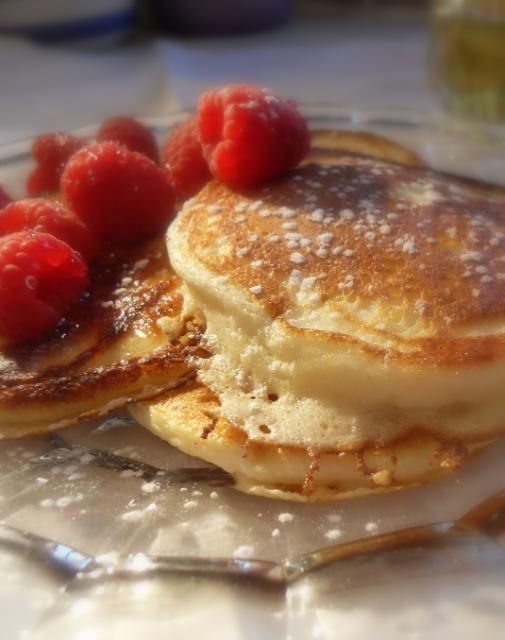 These fluffy pancakes have a deliciously creamy texture. They make a particularly scrumptious breakfast for that special someone in your life, but they also make a delicious dessert when topped with sweetened whipped cream!