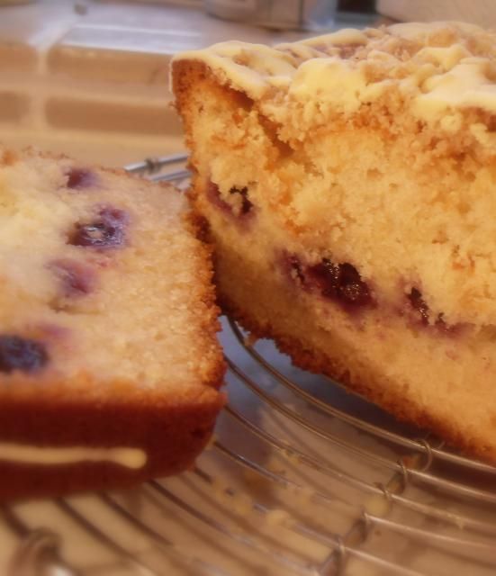 Once baked, a tart lemon icing was drizzled all over the top of the streusel . . .