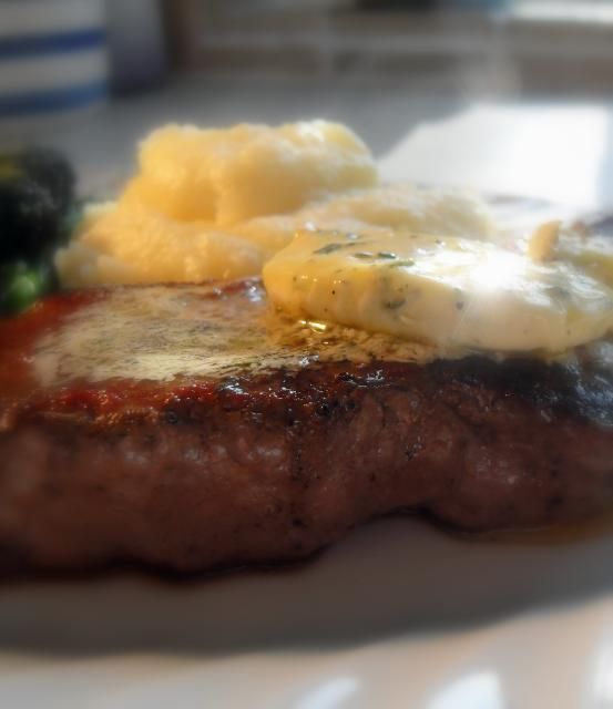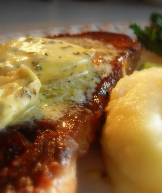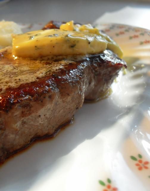 Perfectly cooked and tender rib steaks with a delicious bearnaise butter melted on top. Fabulous! Make the butter at least one hour before serving, or up to a day ahead.