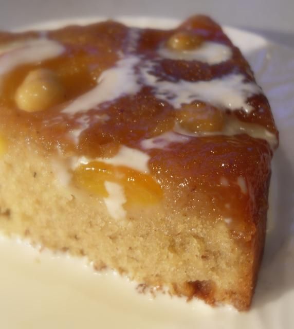 Sometimes known as upside down cake, this is a delicious creamed cake mixture that is baked over top of a scrummy brown sugar and fruit base. Once it is baked and turn out, the fruit makes a very attractive picture with it's lovely rich butter, sugar and nut topping. You could also use pear halves and walnuts instead of the apricots and hazelnuts.