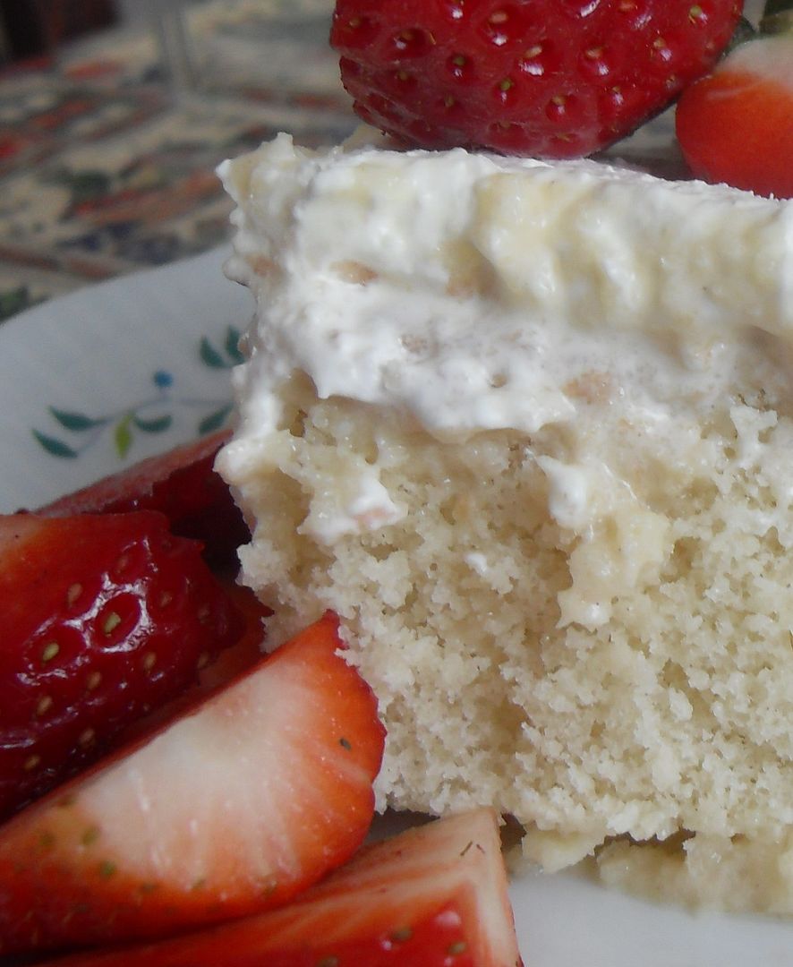 A delicious rich and moist cake absolutely stogged full of three creamy milks . . . Evaporated, Condensed and Coconut milks!! Topped off with some sweetened whipped cream, it goes down a real treat with anyone and everyone!