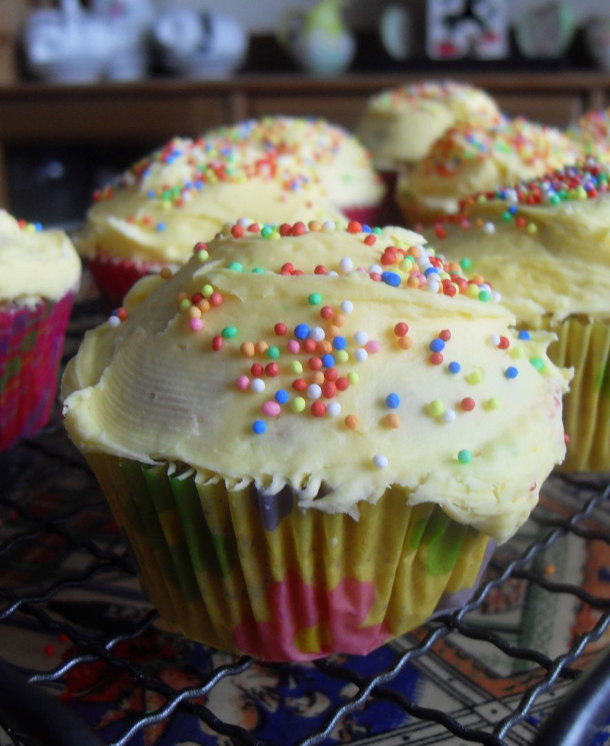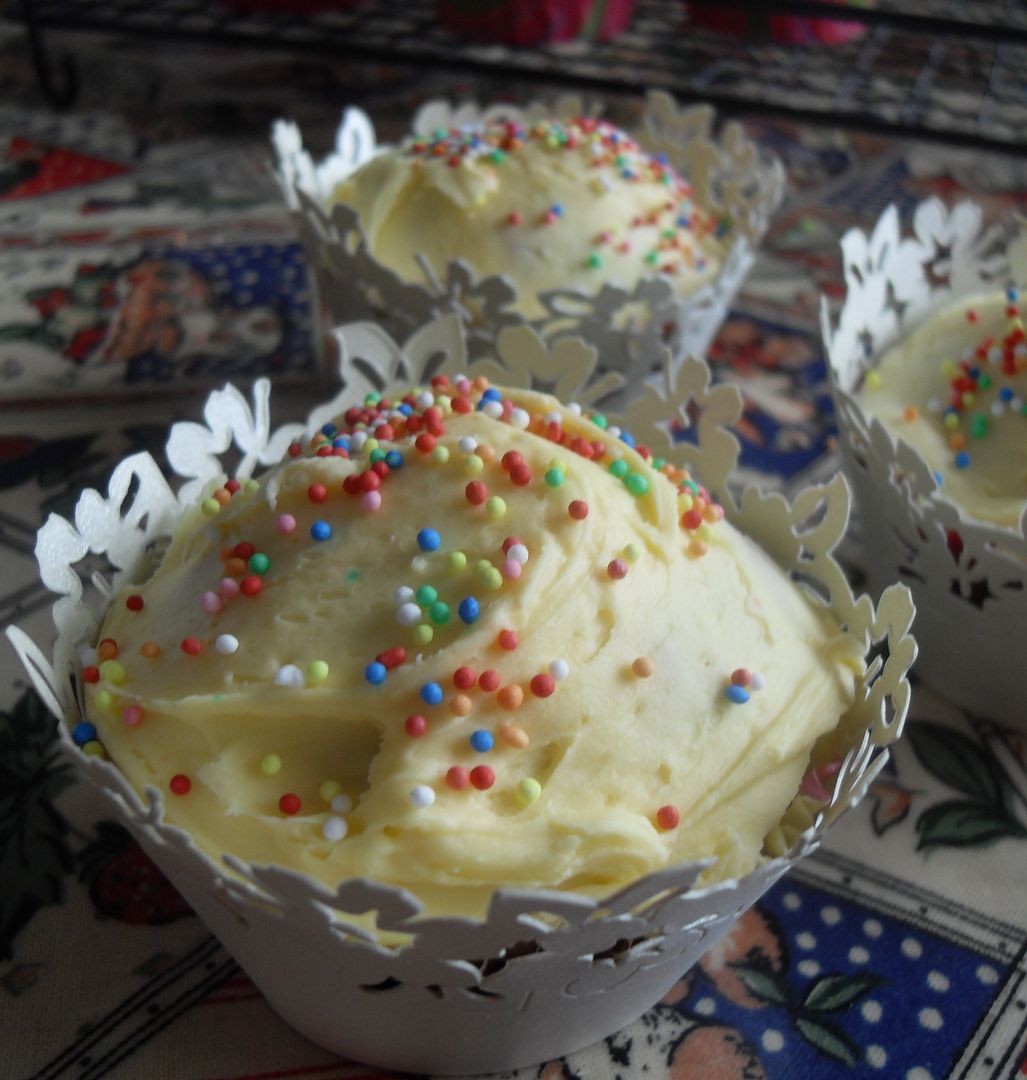 Especially when you dress them up in lacy coats and candy sprinkles. These were well received and went down a real treat. Slightly spicy with the warm flavours of chai tea and a lucious lemon buttercream icing.