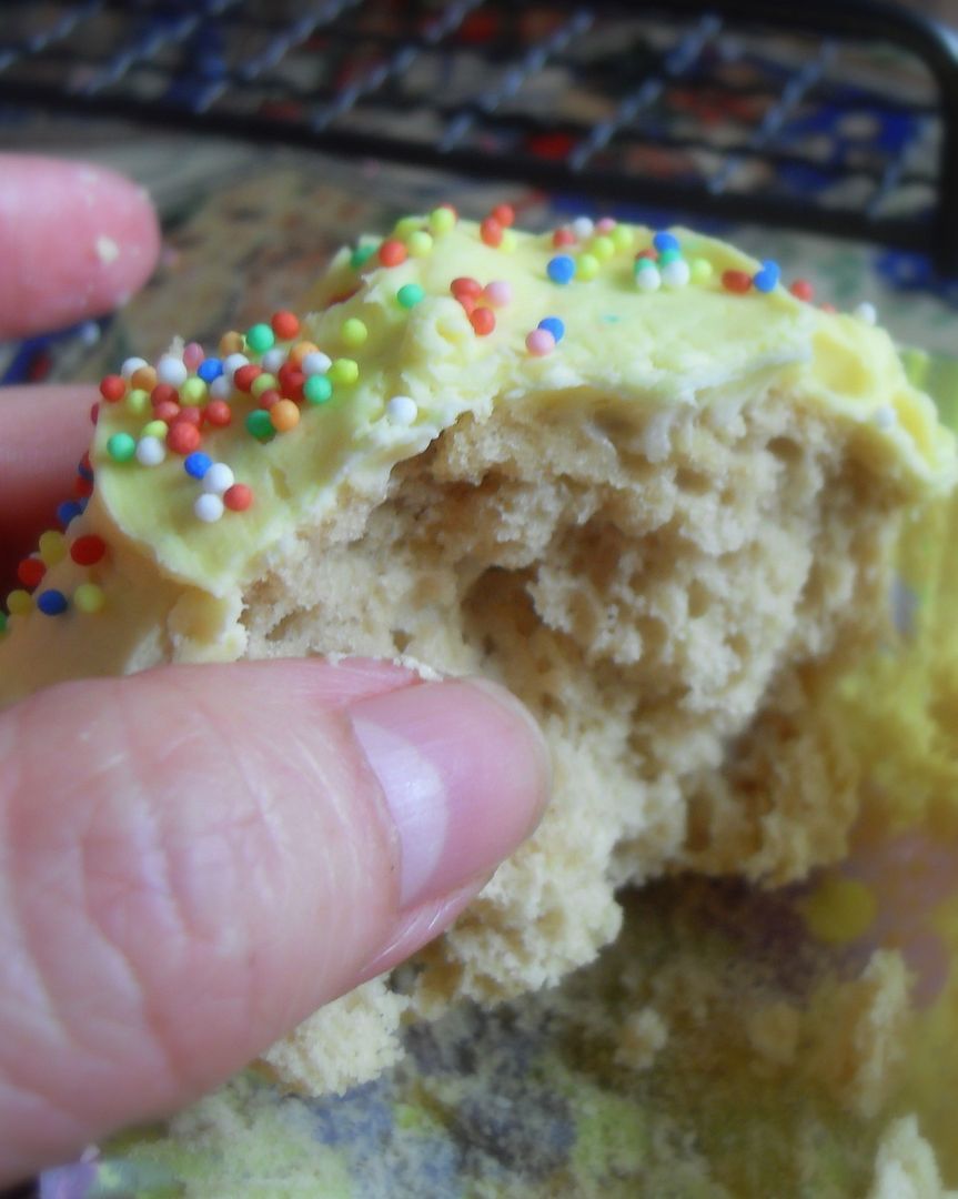 To make the icing beat all of the ingredients together, adding only enough lemon juice to make an icing of proper spreading consistency. You may or may not need it all. Add 1 TBS at a time. Spread over the tops of the cooled cupcakes. Sprinkle with sprinkles if desired. Delicious!