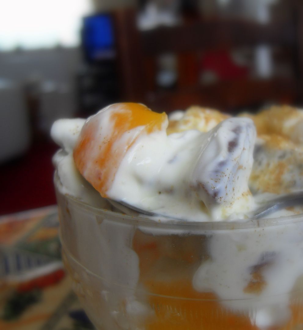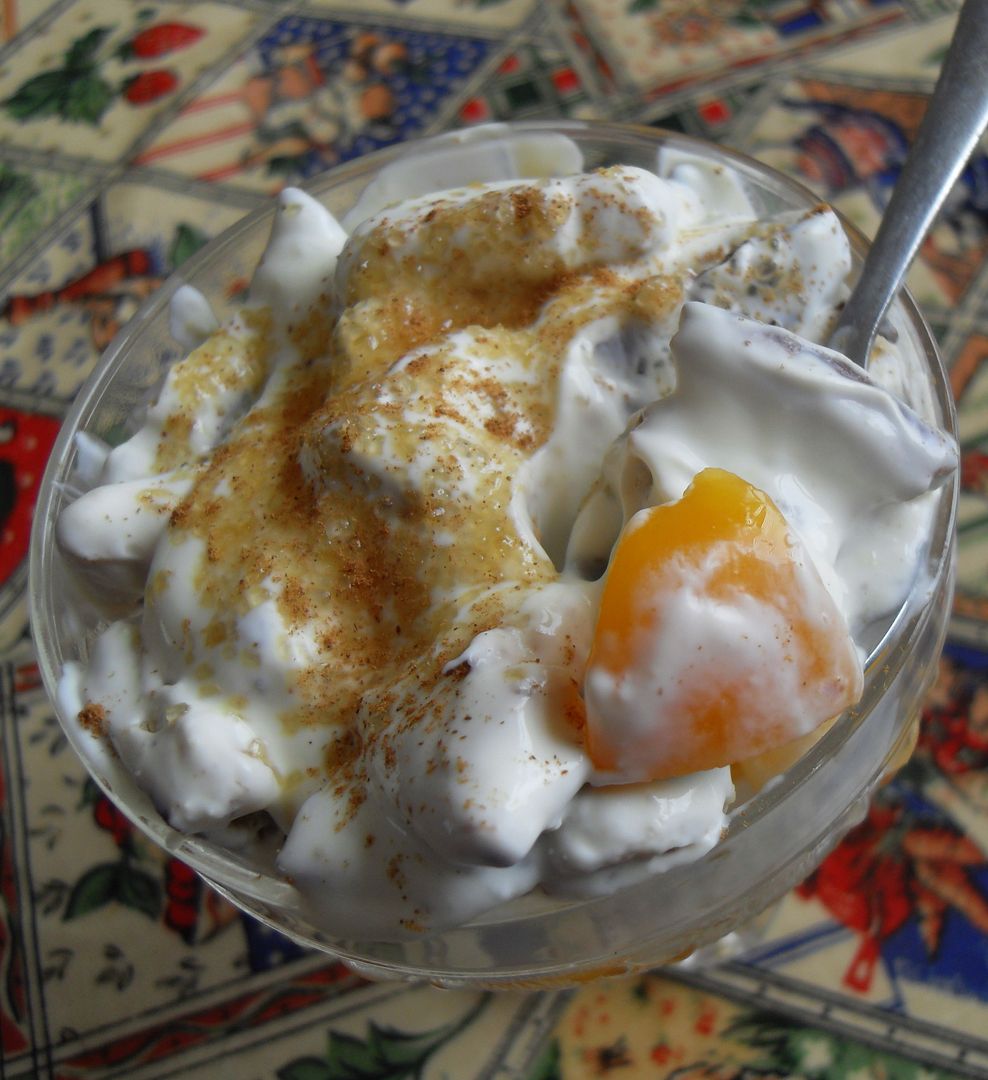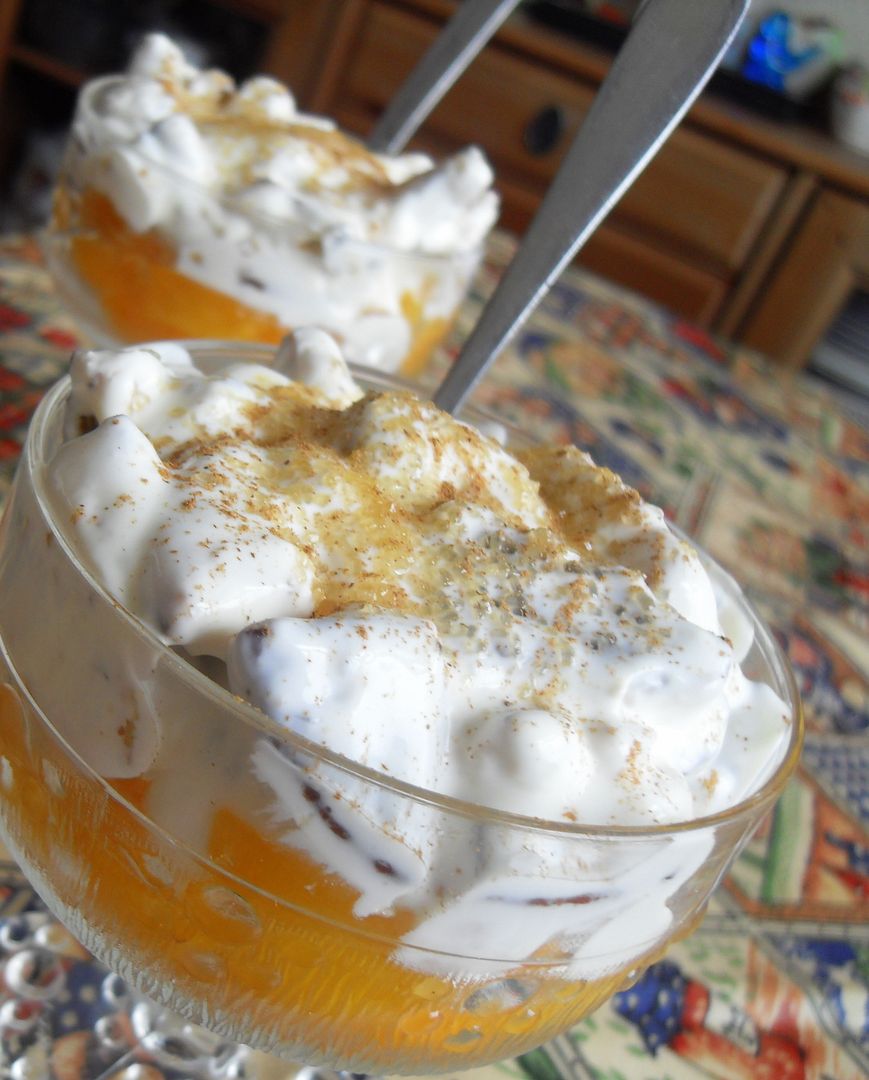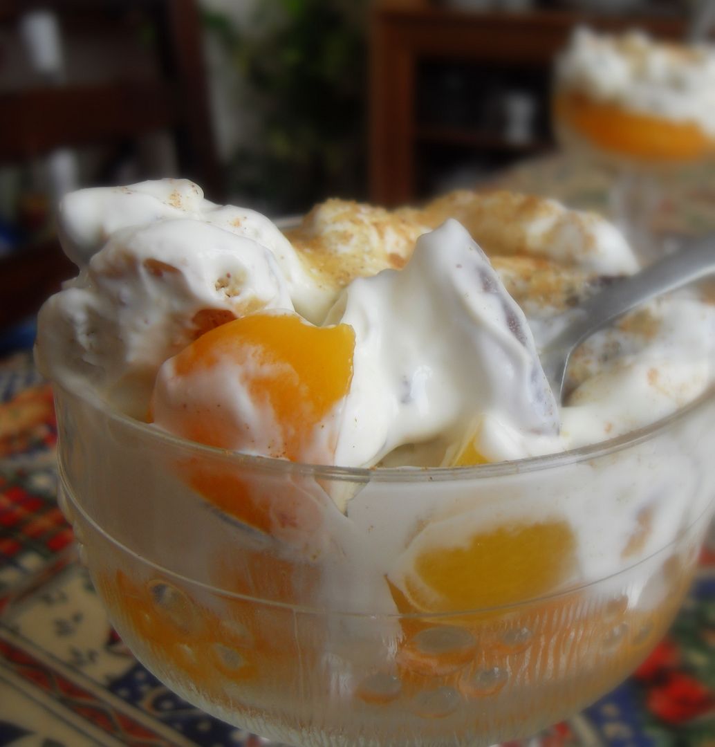 I love recipes which are quick to do and use things that I, generally speaking, have on hand most of the time. Things like tinned fruit,plain yoghurt, cream and chocolate covered biscuits.
