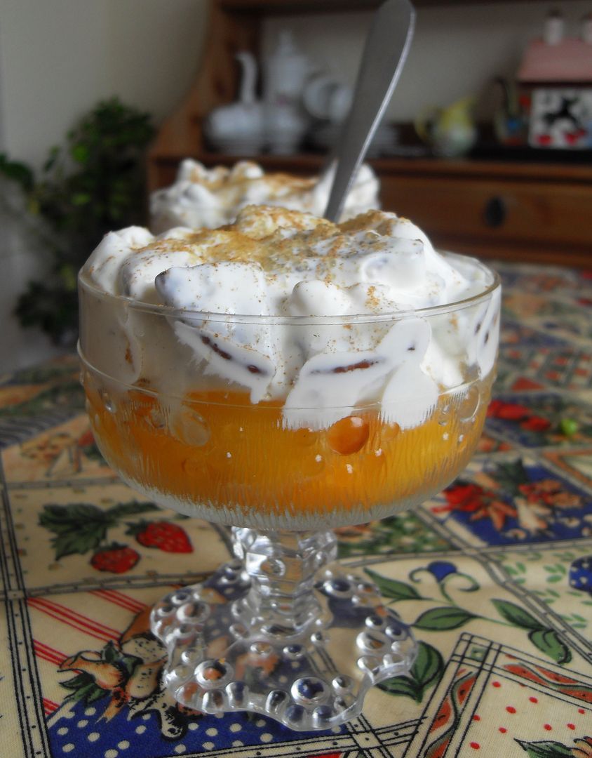 This recipe is so very versatile and the perfect recipe to have up your sleeve when un-expected company drops by. I have used apricots here, but you needen't limit yourself to apricots . . . fresh strawberries, lightly crushed . . . raspberries and blueberries . . . blackberries . . . tinned fruit cocktail, pears, peaches . . . you name it!!