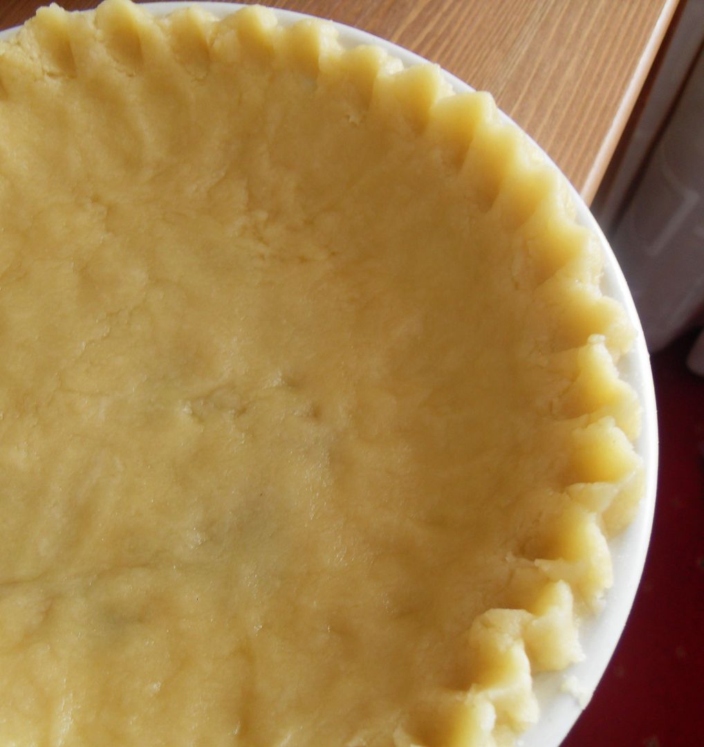 This is so simple and easy to do and makes an incredibly short, flakey and crisp crust. Works well for any single crust pie. You do not need to roll it out.