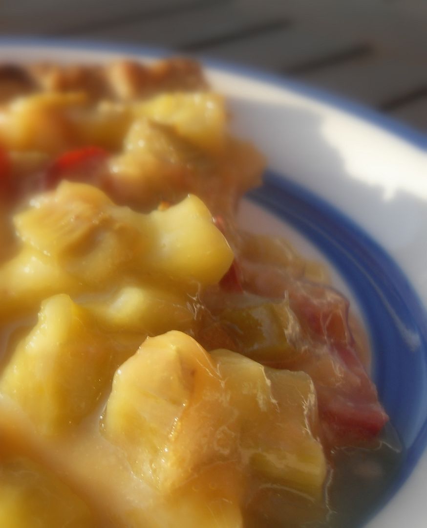Anyways, we walked til we dropped and then came back home. I had some rhubarb I needed to use up and I baked a pie. A delicious rhubarb custard pie, one of my absolute favourites ever in this whole wide world. Tart and sweet and incredibly moreishly scrummy. (Yes scrummy is a word.)