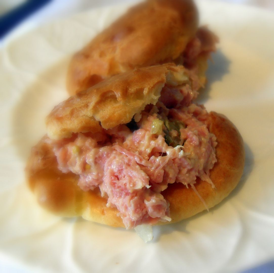 Having said that though, they are very, very good and although mine were somewhat on the largish side, they made excellent shells for some delicious Deviled Ham that I threw together for our lunch.