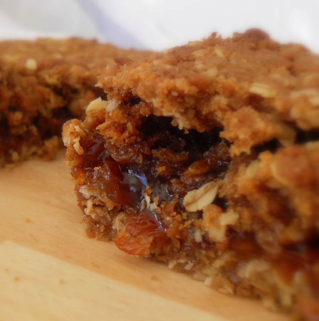 Whisk the oats, brown sugar, flour, soda and salt together in a bowl Pour the melted butter over top and mix well together until nice and crumbly. Press half of the crumbs into the prepared pan. Spoon the sultana filling evenly over top. Sprinkle the remainder of the crumbs over top and press down lightly.