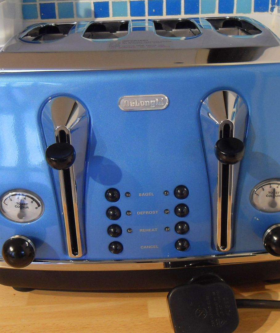 After spending some time looking them all over I finally settled on the DeLonghi Icona 4 Slice Toaster in Blue. I loved the retro look of it and the colour suited me to a "T". I placed my order and was thrilled when I got an e-mail a little while later telling me that it had already been shipped and I would be receiving it by courier the very next day!!