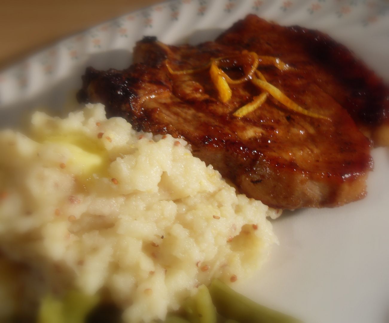 *Sticky Ginger Orange Chops with Parsnip, Potato and Honey Mustard Mash*