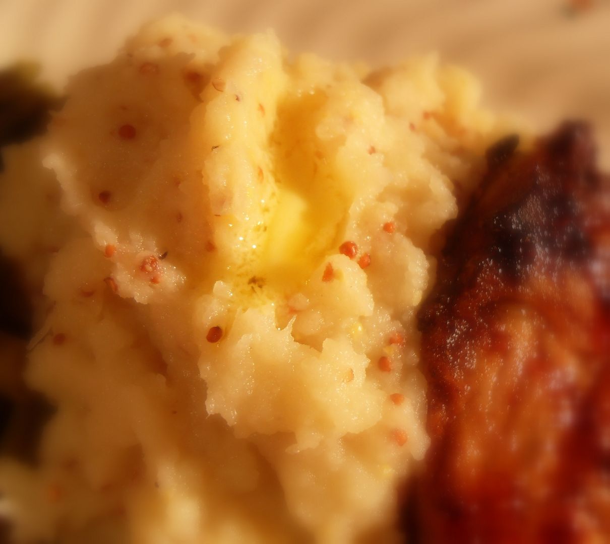 Remove the parsnips, potatoes and milk from the heat. Mash together with the butter, cream, honey and mustard, until smooth, and only using enough cream to give you a nice consistency. Season to taste with salt and pepper.