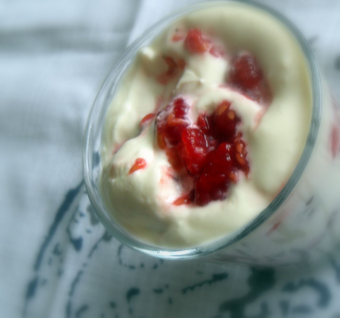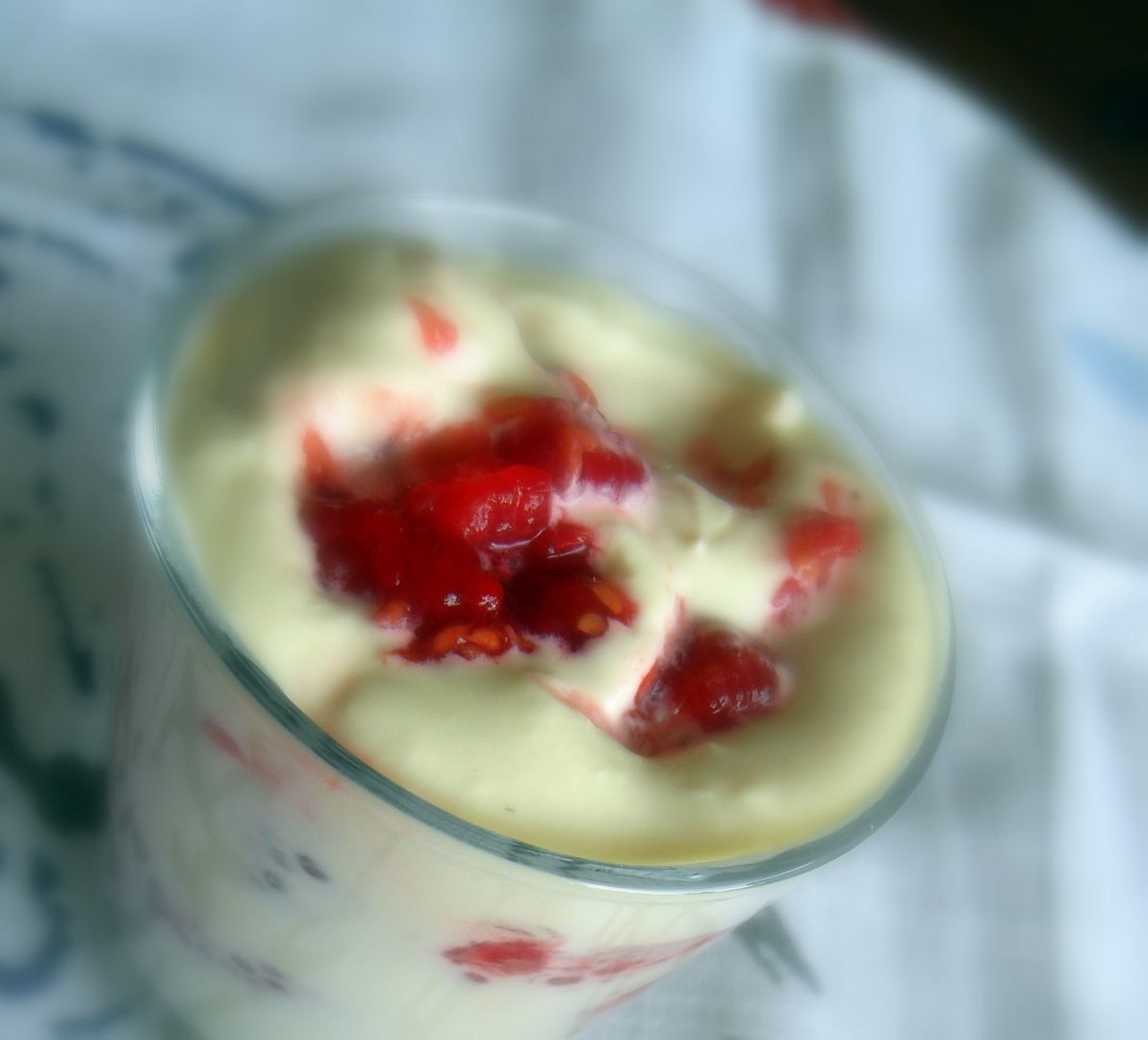 I was not disappointed. I always have a bottle of Limoncello in the larder. (Doesn't everyone?) You can easily make your own so it needn't be expensive. Giada has a recipe here. I love fresh raspberries. I love lemons. Combining the two with a creamy limecello spiked syllubub is genius, pure genius!