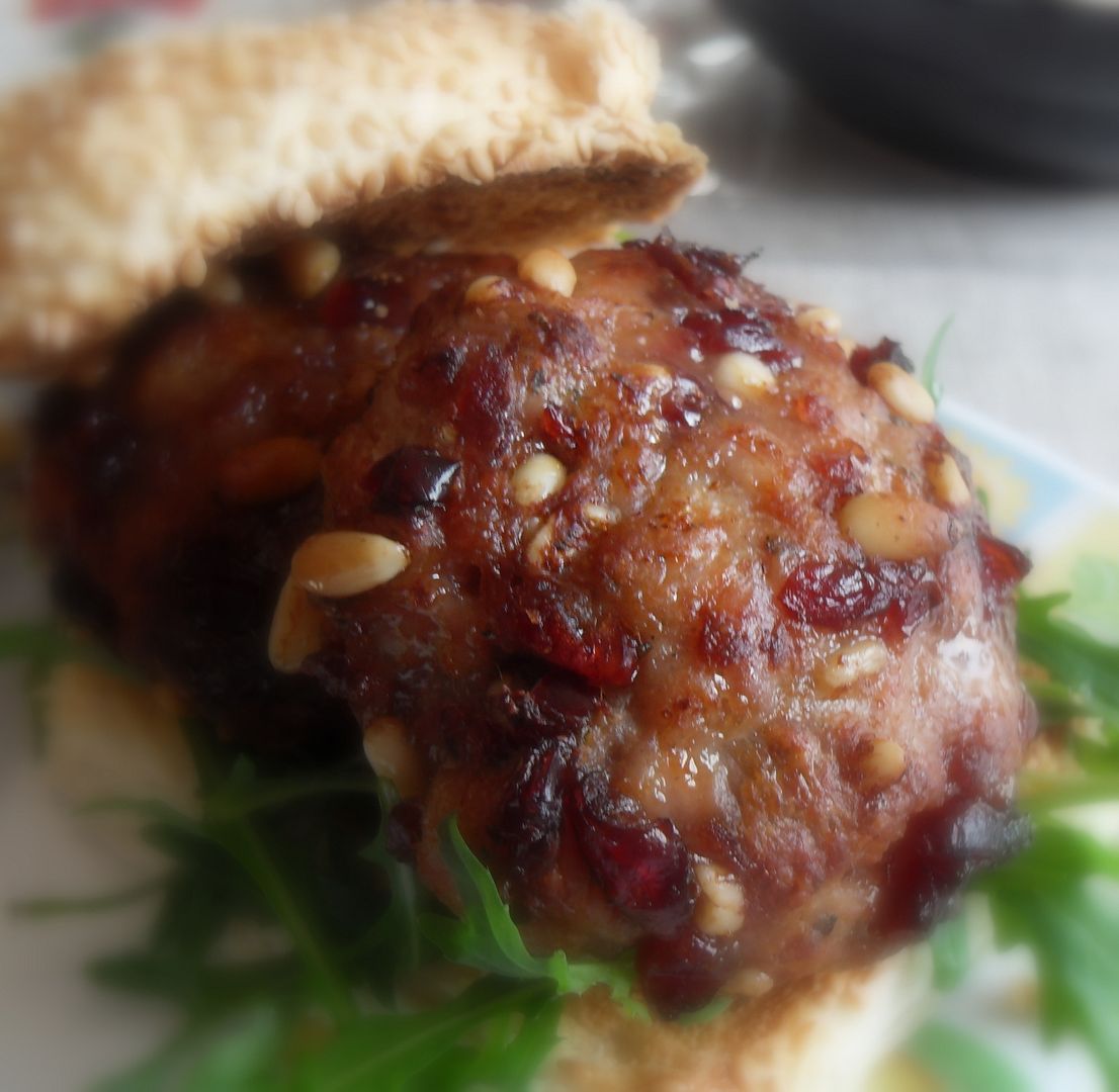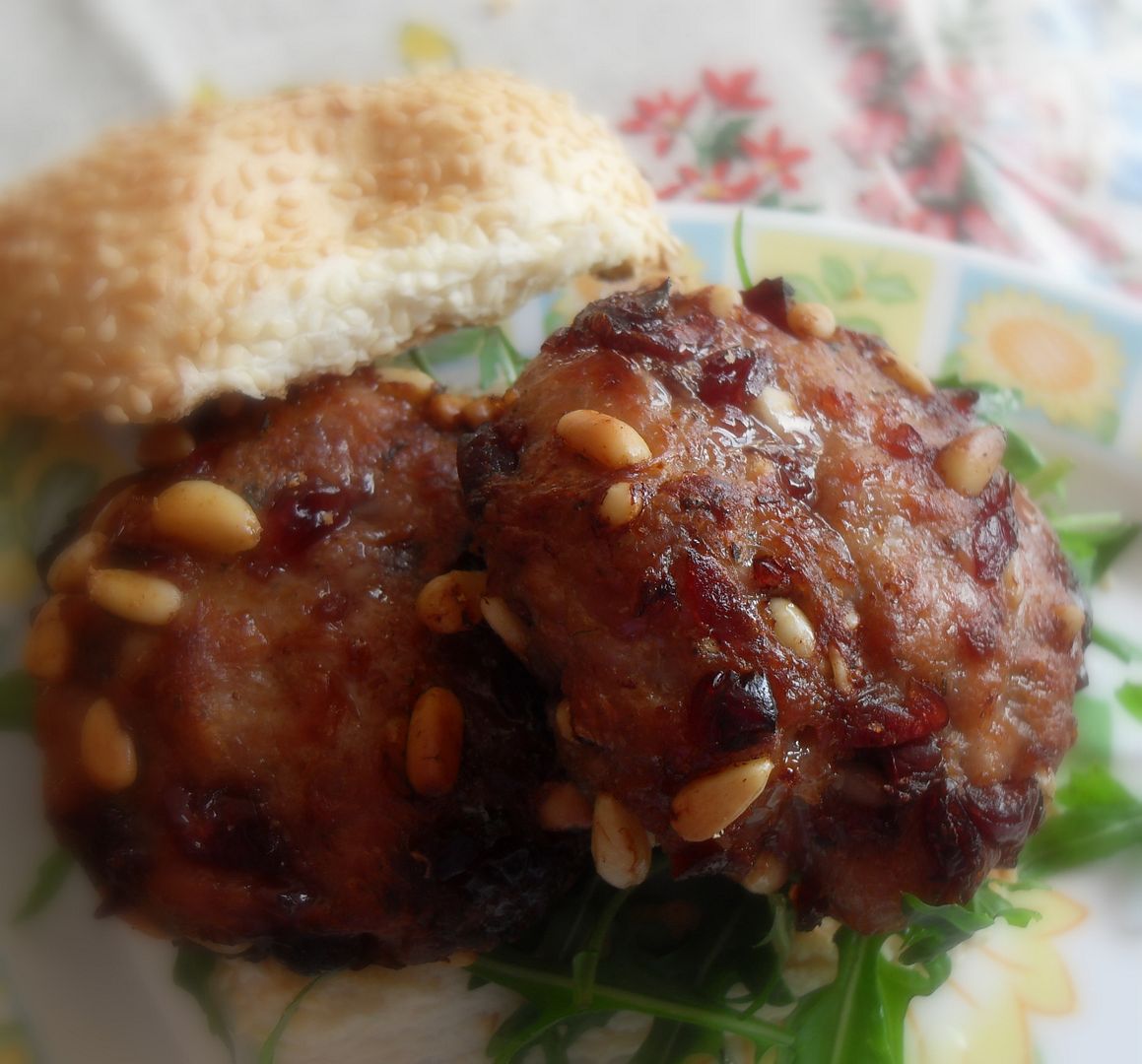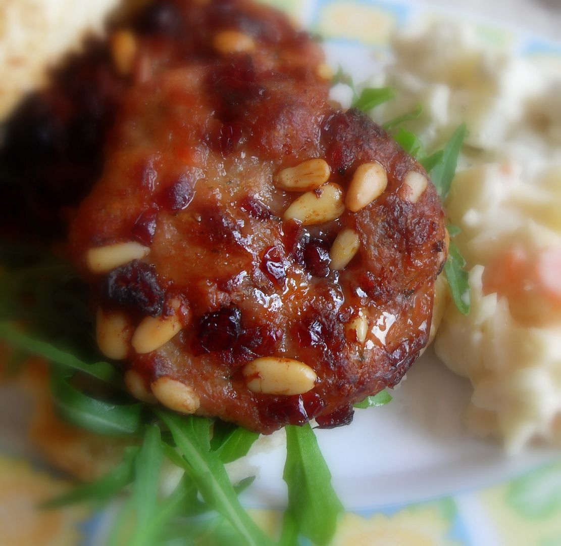 But my darlings . . . they were fabulous just as is. They were moist and succulent, with little bits of fruity sweetness, and a moreish little nuttiness from the pinenuts. I can tell that the leftovers are going to be every bit as good, perhaps on their own with a small dollop of mayonnaise??? *Oink* Oink* Come to mama!