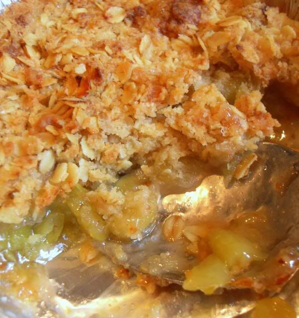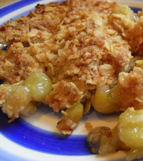 Bake in the pre-heated oven for 30 to 35 minutes, until the fruit is bubbly and cooked and the crumble topping is lightly browned. Remove from the oven and allow to cool a bit before serving.
