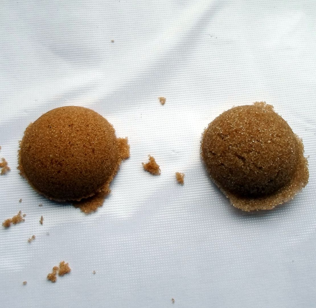 Yes, the Billingtons is the one on the left. It's much darker than the other one and looks quite a bit moister to me. You can see white granules in the ordinary brown sugar too, which is not altogether that appealing in comparison. But how does it taste??? Is there a definite taste difference??? Let's see . . .