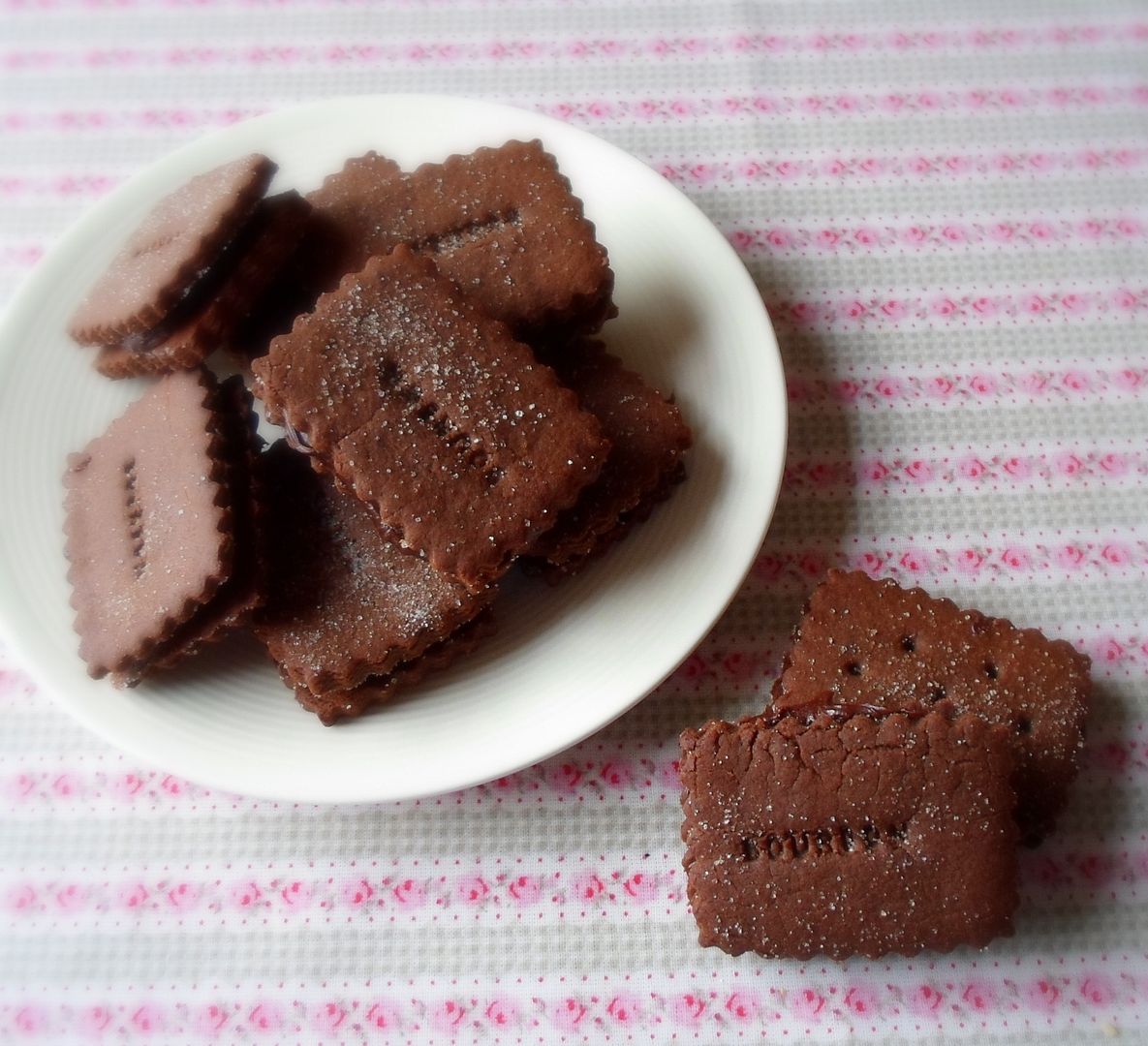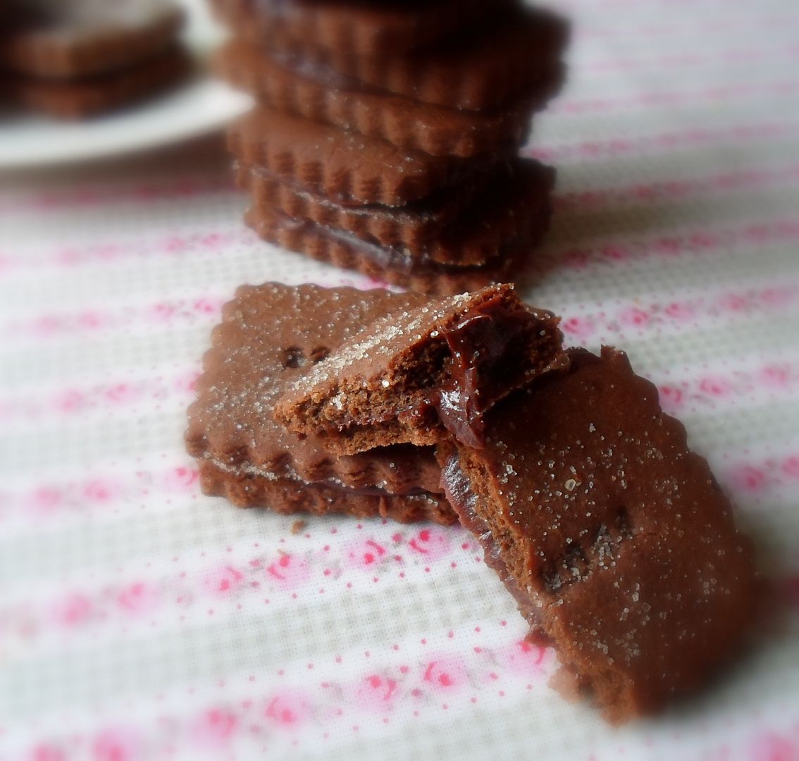 Rich and crisp . . . these are very moreish I think . . . almost dangerous. Simple to make though . . . very easy. A simple chocolate dough, rolled and cut into rectangles, dusted with some caster sugar and then baked. Finally sandwiched together with a rich chocolate buttercream, these are pleasing on many levels . . .