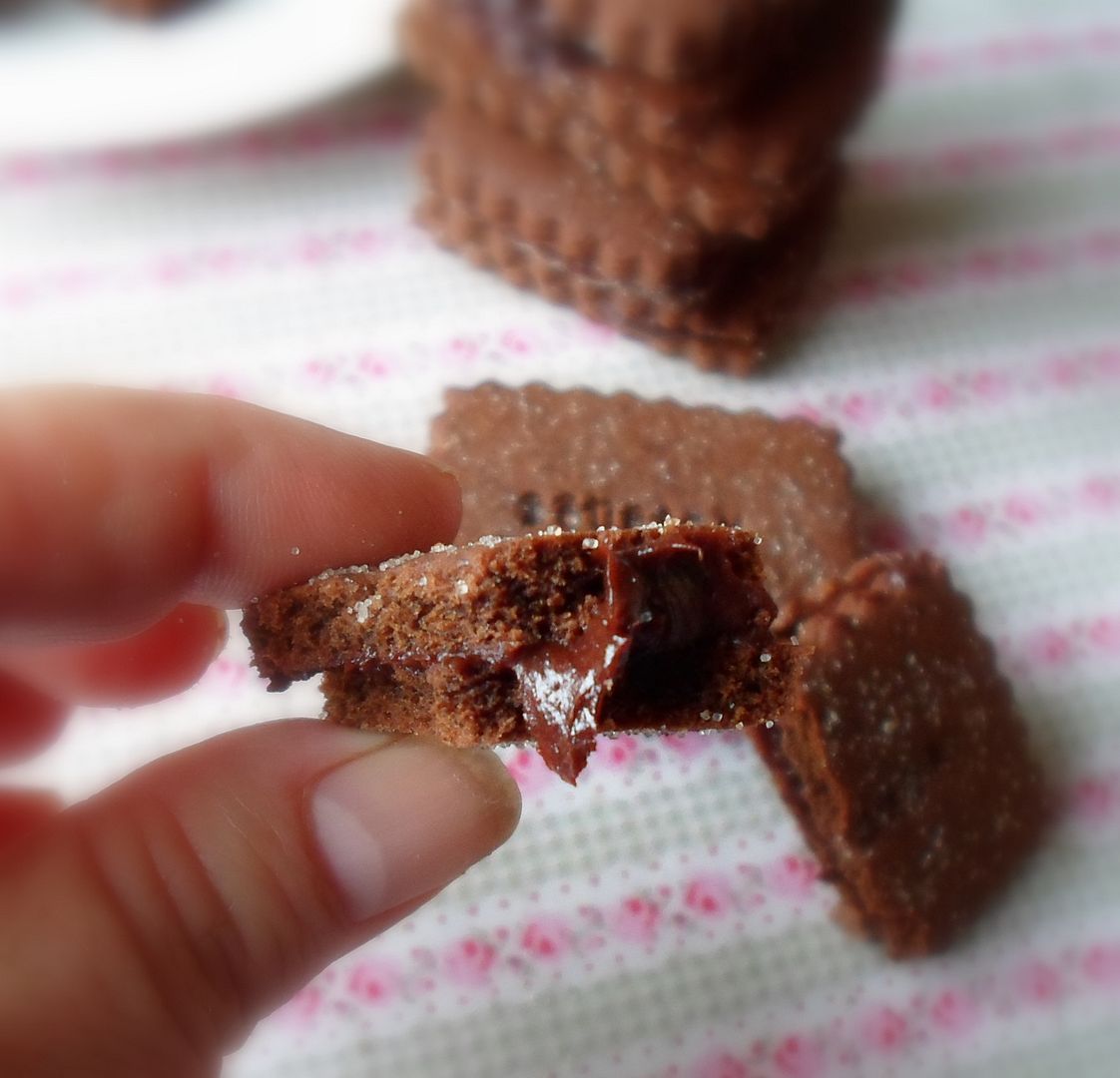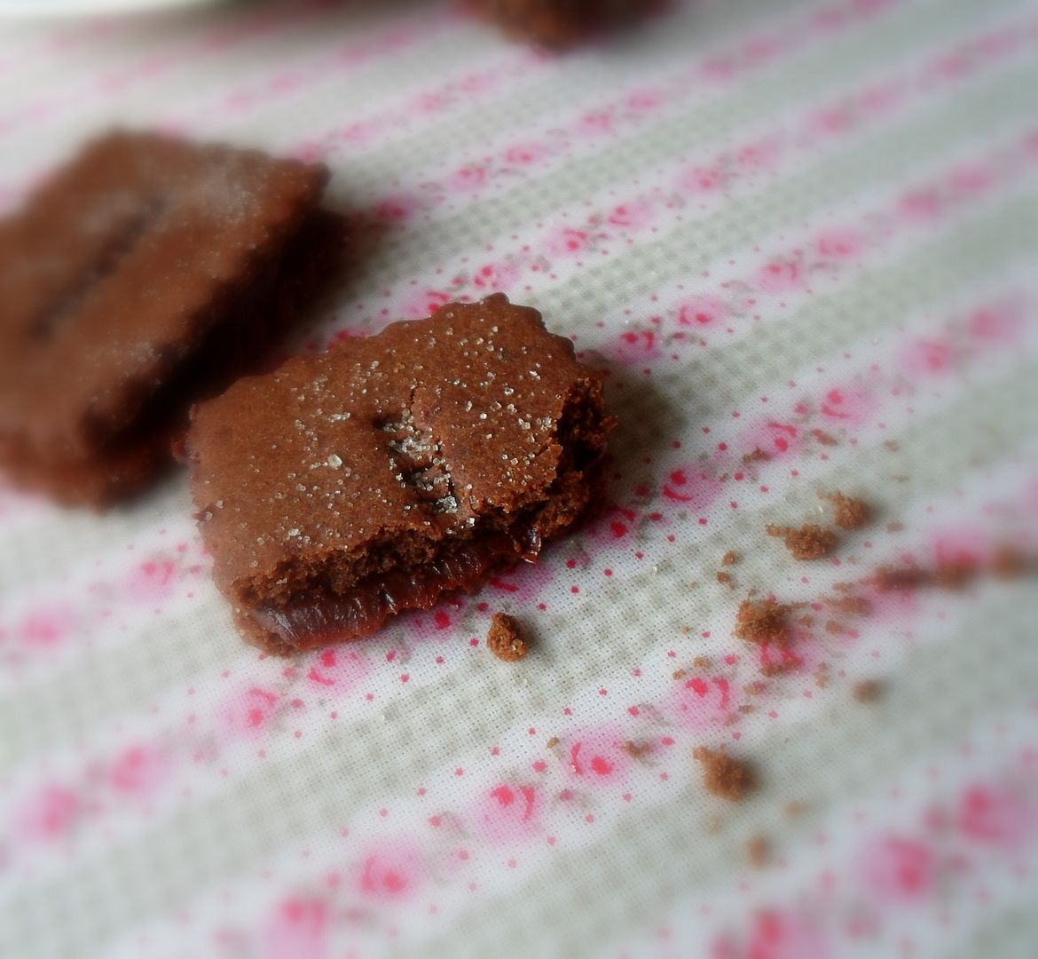 Rich dark chocolate biscuits with a creamy chocolate filling. Adapted from Jamie Magazine.