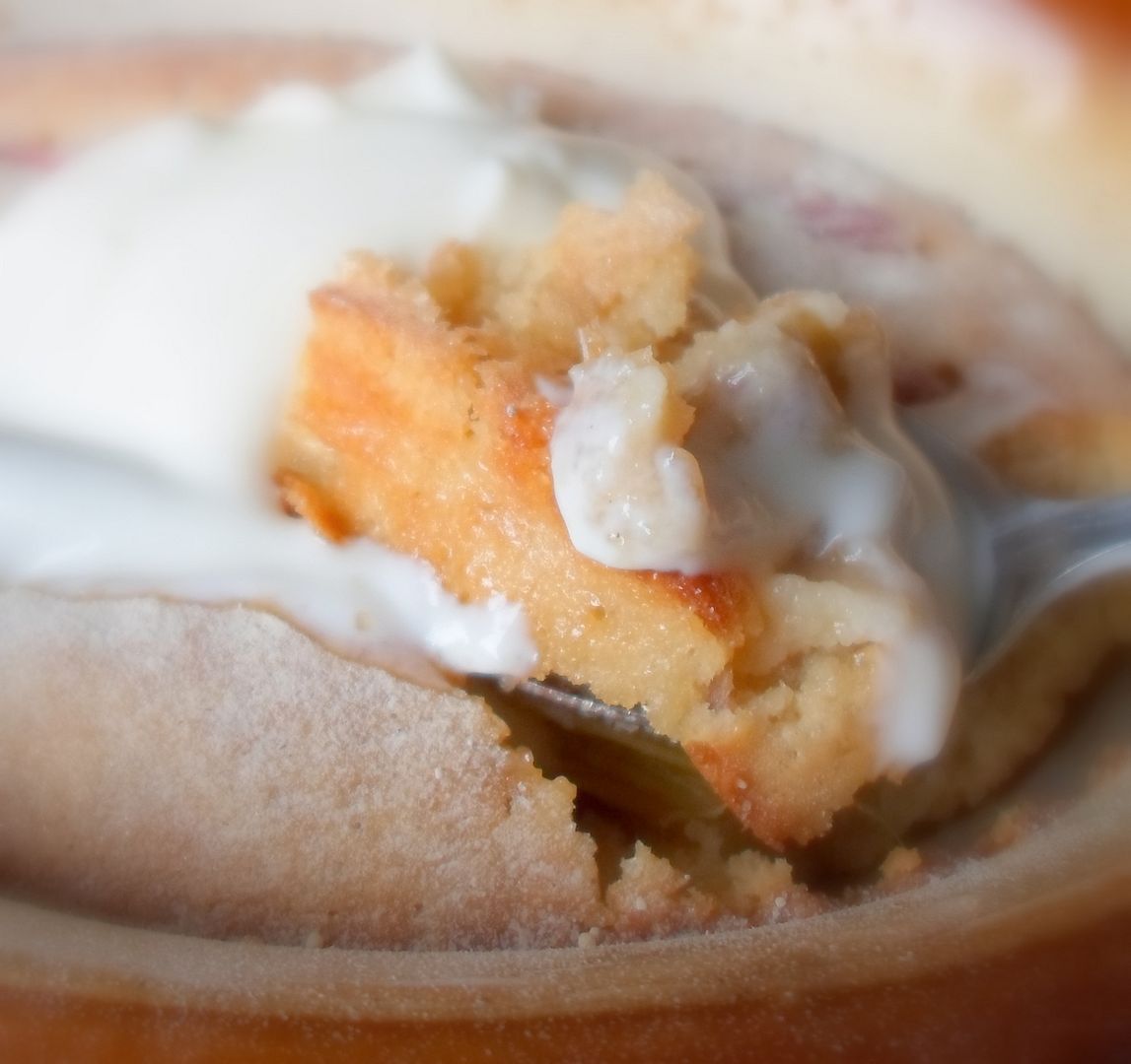 Then again . . . there are these lovely little rhubarb puddings . . . with slices of fresh pink rhubarb . . . baked into, and all nestled amidst a cakey type of pudding . . . almondy and short . . . moreishly and delightfully tart . . . with just a touch of sweet glaze and crunch from the demerara sugar you've sprinkled on top before baking. Vanilla bean ice cream is lovely with this as well . . . but then again . . .