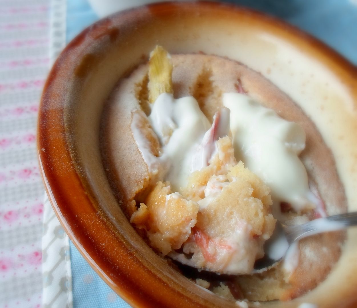 So is a huge dollop of plain . . . full fat farm yoghurt. There is nothing to take away from the sweet tartness of the rhubarb . . . and yet it works so perfectly . . . tis unctuous and rich . . . and just a tiny bit sinful, but then . . . why not. We only live once.