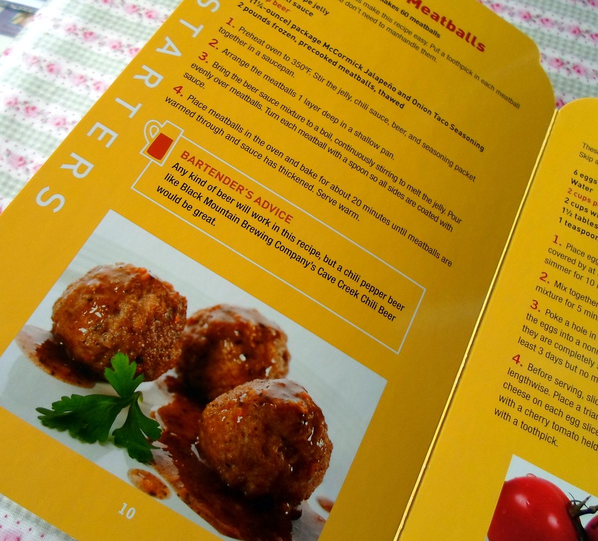 There are recipes for starters, mains, sides and amazingly even desserts, each one containing detailed instructions and a tasty looking photo, not to mention some bartenders advice near the bottom and a heads-up rating . . . easy, medium or hard . . . so that you can pick according to your skills or desire.