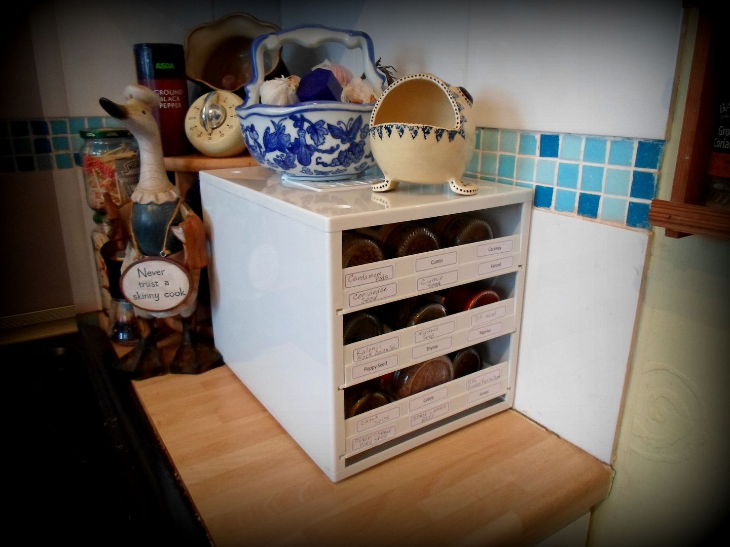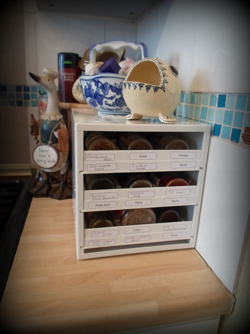 This is that same space a short time later. I love it! I love it so much that I am going to go out and buy myself another one! (yes . . . sad but true, I have that many herbs and spices. Don't judge me.)