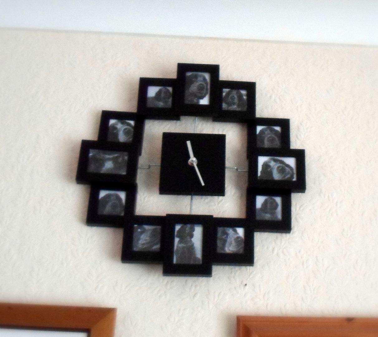 Seeing as we had just gotten all these lovely photos of Mitzie I chose this lovely photo clock. We have a bunch of photo frames on our lounge wall, black . . . and pretty snazzy group ones too, which look quite similar to this clock. I like them and so I thought this clock would be the perfect choice to showcase all those lovely photos we got of Mitzie.