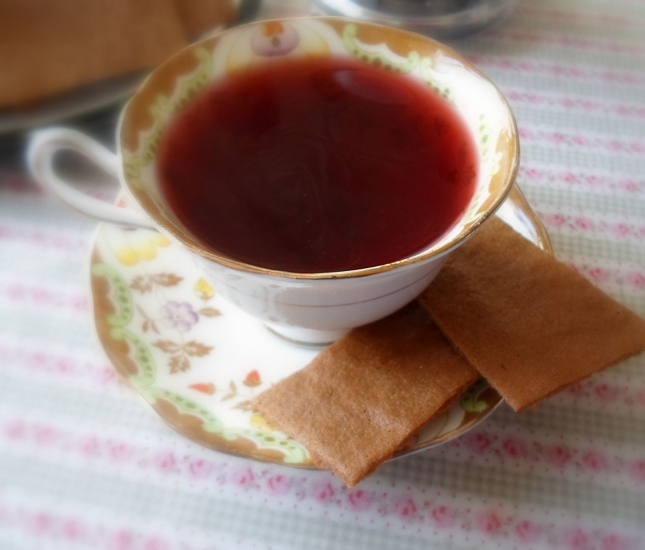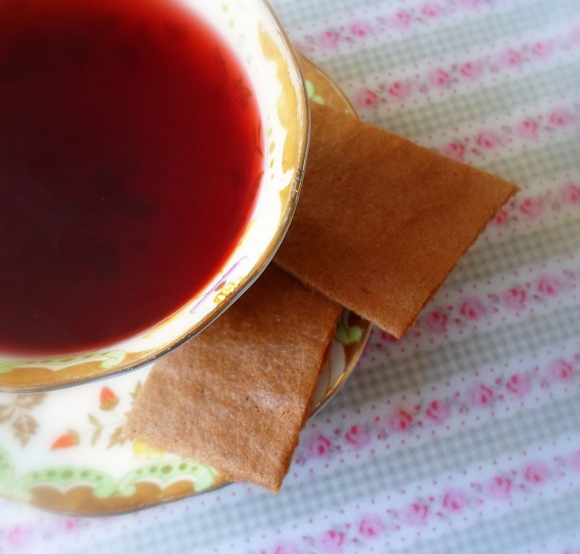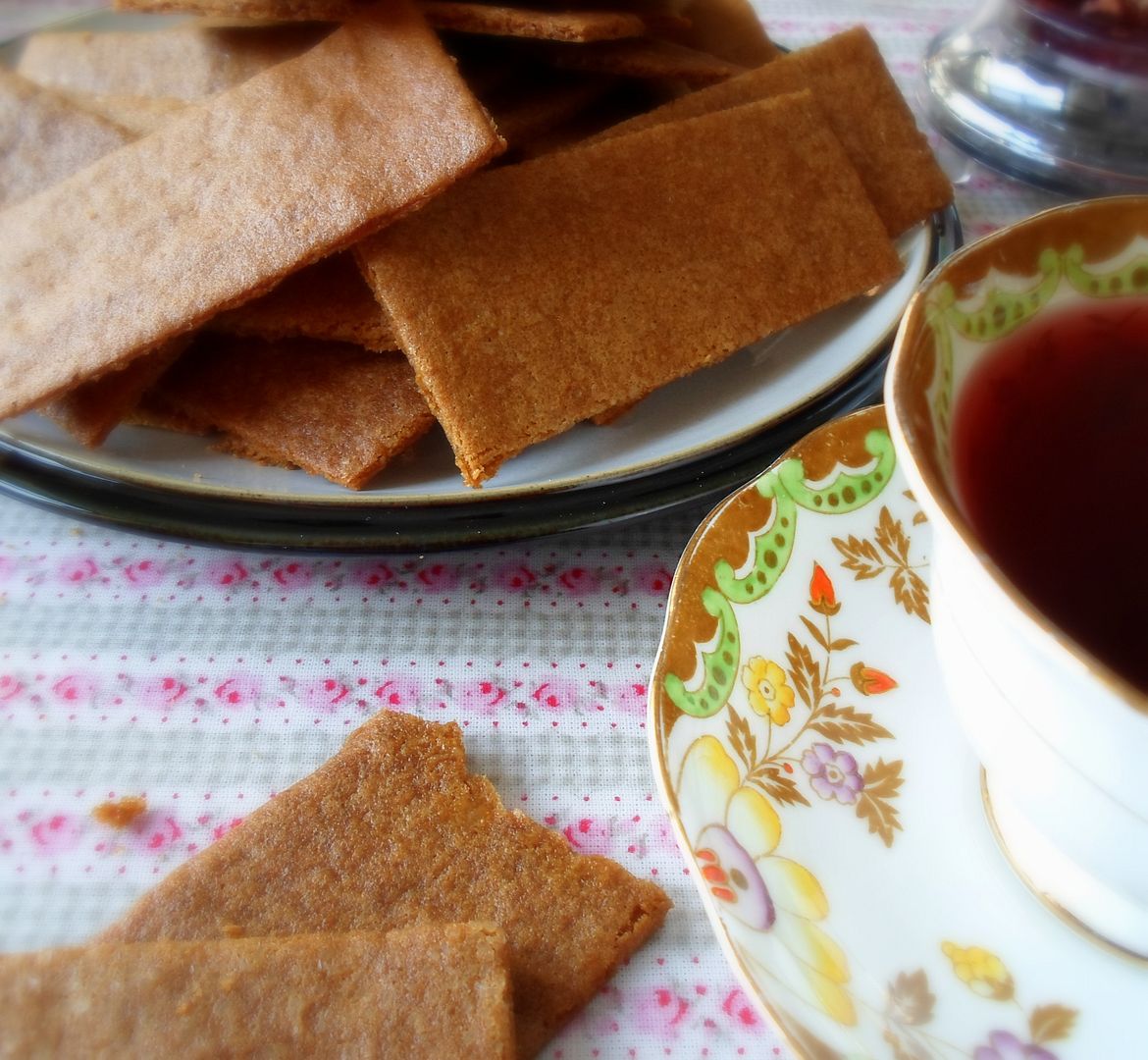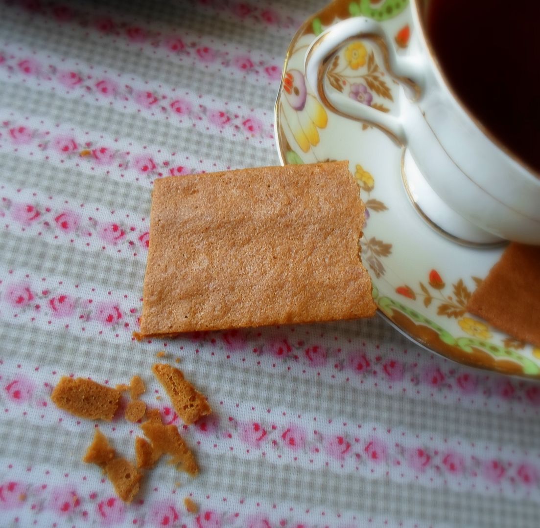 The end result is a biscuit that is airy and light and oh-so-crisp . . . crunchy, and quite quite irresistible. I enjoyed mine with a cup of my favorite Blood Orange herbal tea . . . deliciously, moreishly good!