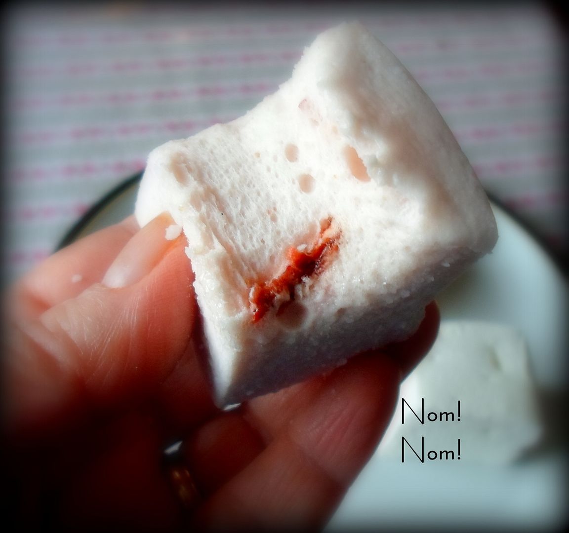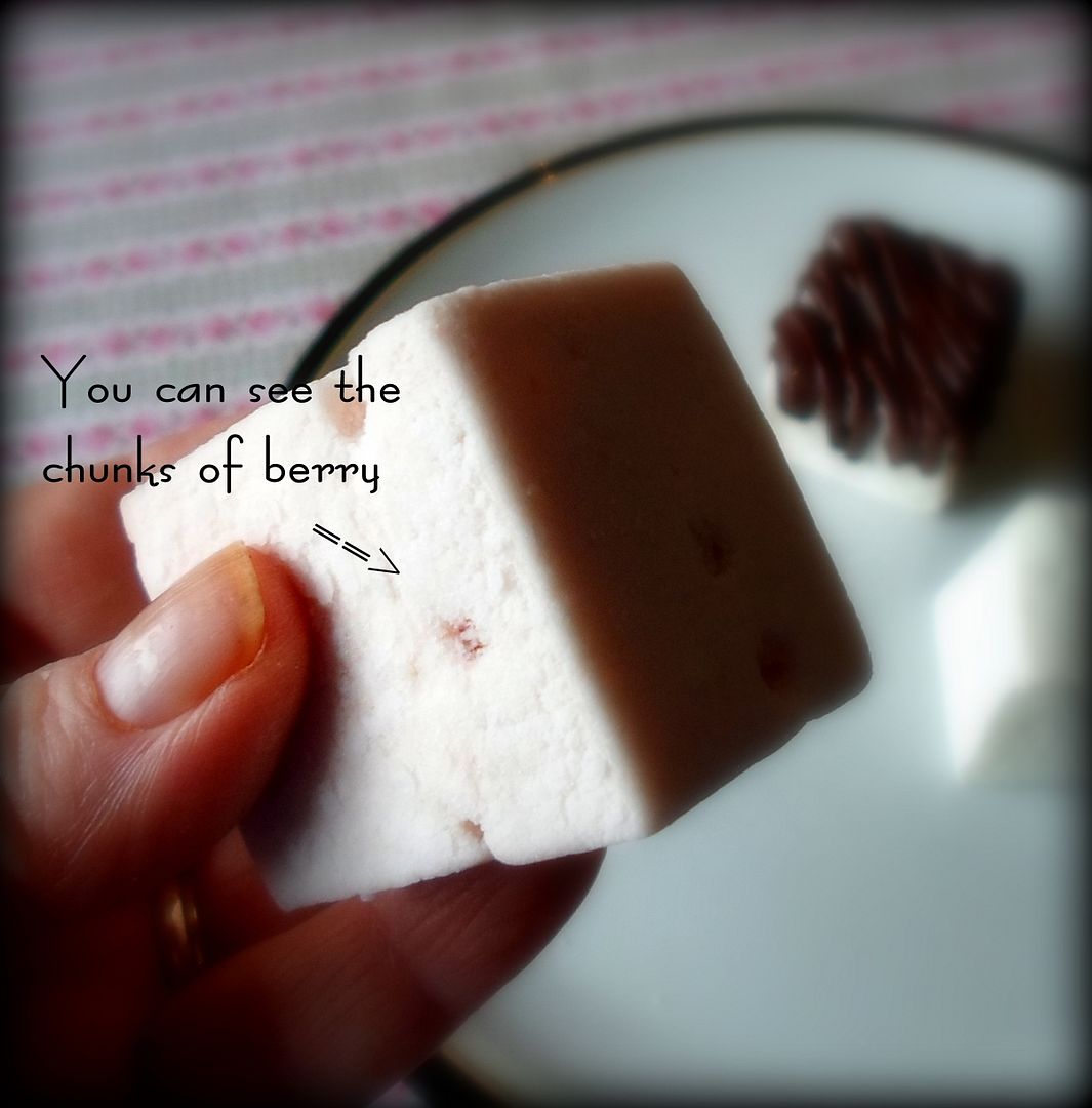 The first one out of the starting gate was the Strawberry Burst Mallow. It had the merest hint of pink flush to it . . . it wasn't bright pink like the normal store bought mallow. A plus for me. I hate anything artificial.