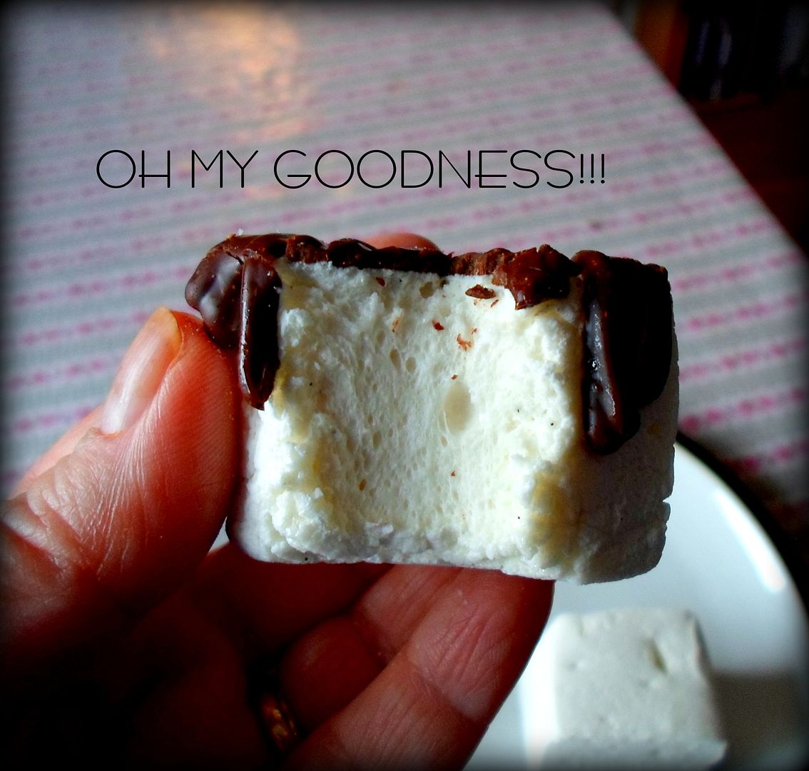 By then there was no turning back, the next to fall was one of the Vanilla Bean Mallows, which I don't have a picture to show you of because my teeth were still full of that lovely chocolate from the last mallow . . . and it was streaked with chocolate. Naughty me. It was good though, trust me on this. Soft and fluffy and filled with tiny miniscule flecks of vanilla.