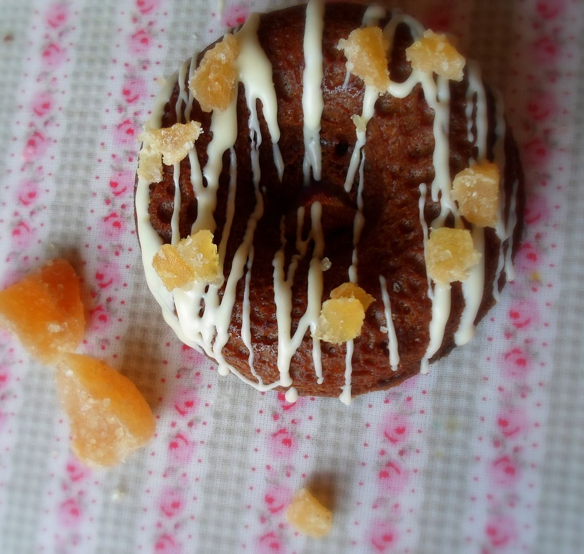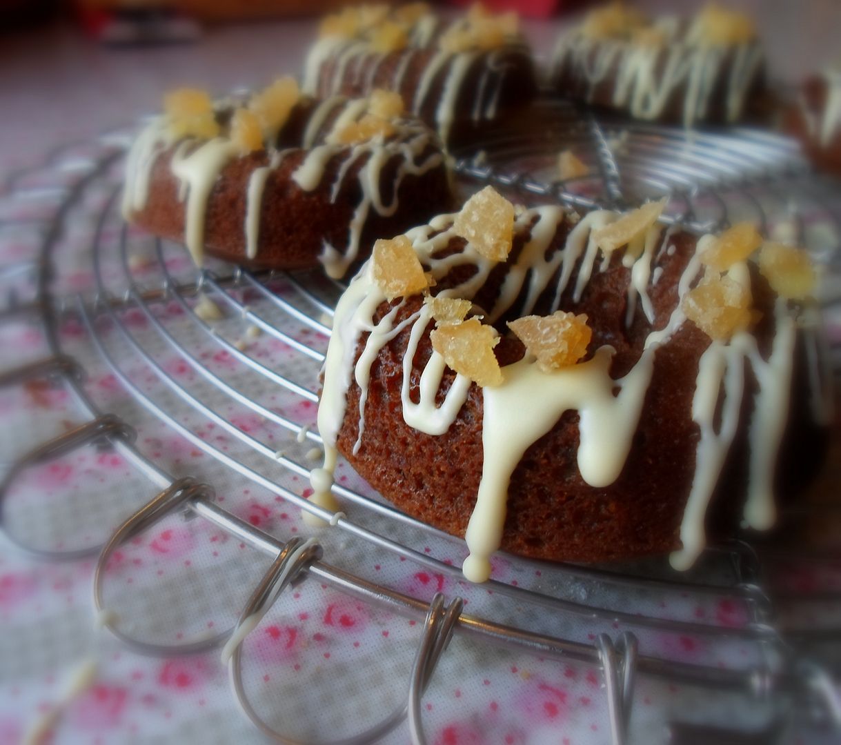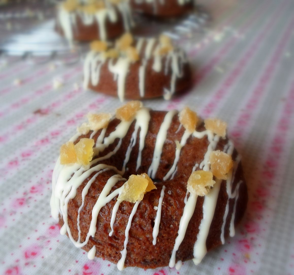 Festively perfect for a holiday brunch. Nicely spiced, with a sweet white chocolate drizzle and sprinkled with bits of candied ginger. Soooo good!!